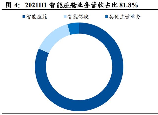 智能座舱业务是公司的基石。1)2021H1 智能座舱业务营收达到 33.38 亿元,占比 81.8%,毛利 8.47 亿元,占比 83.4%。在此期间,公司智能 座舱域控制器、大屏化座舱产品、数字化仪表等座舱产品获得了一汽丰 田、长城汽车、吉利汽车、广汽乘用车、奇瑞汽车、比亚迪等多家主流车企的新项目订单。2)智能驾驶、网联服务板块为公司未来的重要发 力方向,其中智能驾驶业务 2021H1 实现营收 5.71 亿元,占比 14.0%, 毛利 1.09 亿元,占比 10.7%。