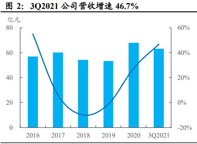 3Q2021 公司营收、归母净利快速增长。3Q2021 公司实现营收 63.03 亿 元,同比增长 46.7%,归母净利润 4.91 亿元,同比增长 54.4%,在芯片 短缺的不利背景下实现了高速增长。
