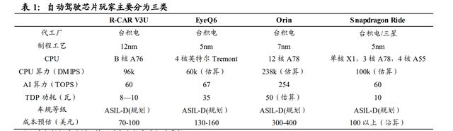 目前自动驾驶芯片主要玩家可以大致分成三类。